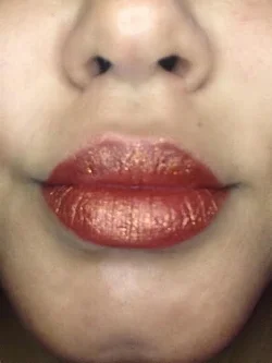 Gothica is a one of a kind coppered bronze shade. The base for this lipstick is a reddish brown and is packed with chunky rusty gold and yellow gold glitters. Metallic lips are in! Matte lipsticks are a tricky formula to master but Kat Von D has put the work in to perfect her formula. This shade glides on at full color with the first pass across your lips. Lipsticks with chunky glitter tend to leave a gritty feeling on your lips, however, that isn’t true for this lipstick. It is a smooth finish that is comfortable and velvety. A creamy matte lipstick won’t dry down, so it will transfer and fade throughout the day or after eating. Just toss this gorgeously packaged lipstick in your bag before you head out the door and reapply as needed. Though the lipstick shade will fade, the glitters cling to your lips. To completely remove the lipstick and glitters, use your favorite makeup remover. I find that oil cleansers work the best and are very gentle on the lips.