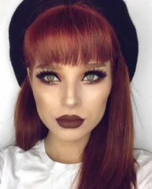 Make-up Looks using one solid color patter such as brown eyeshadow, brown lipstick and sculpted contour blush.