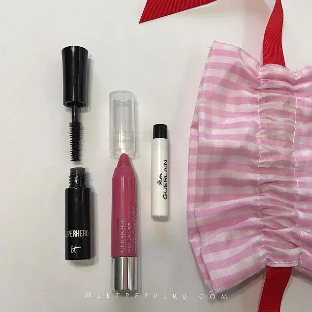 The fragranced featured was Mon by Guerlain. It has a warm smell that is perfect for the "Glamp" theme. The Clinique Chubby Stick Moisturizing Lip Colour Balm is an easy throw-it-on lip product. The It Cosmetics Superhero Elastic Stretch Volumizing Mascara makes your lashes very fluttery. However, I thought it was kind of an out of place item. It just really didn't make sense in this bag. I read up on the product on Sephora's product web page. It describes the mascara "like skin care for your lashes."