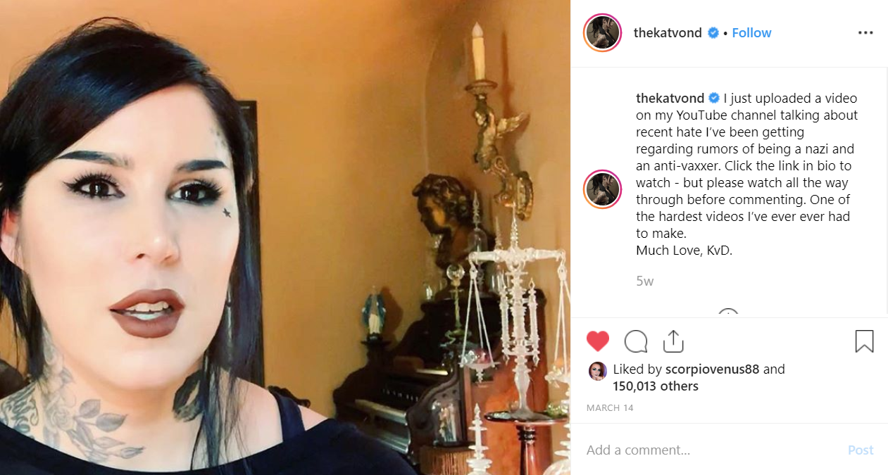 Kat Von D Addresses Nazi + Anti-Vaxx Scandal In An 11 Min Youtube Video
