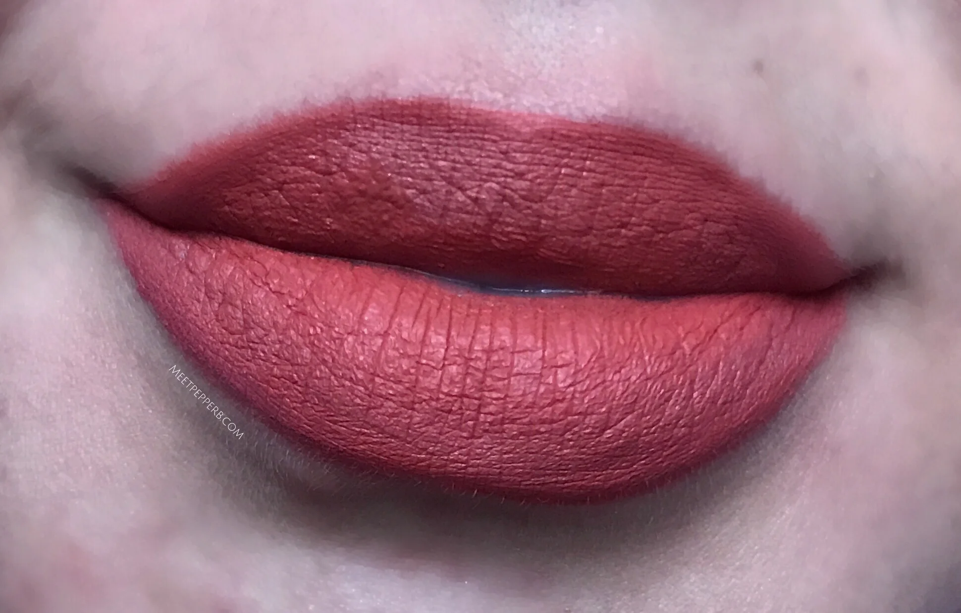 Dose of Colors makes an amazing liquid lipstick formula. The color is so rich! It is a mousse like formula with a comfortable finish. I've been wearing their lipsticks for years and never have a problem. The only application note you need to keep in mind is that you need to let the formula dry down or you will move the color around like I did in the swatch of Hot Fire. You can see in the center wear my lips touch that the color looks lifted but that was pure application error. This almost neon red-orange shade, Hot Fire, is a little bit tricky to get an even finish but you can finish it easier with a brush. Savage though -amazing! It is so dark and vampy. Of course, a fall staple. The lipstick wears down to a nice stain. If I had to choose just one, I would painfully take Savage and just miss Hot Fire with great sorrow. I see myself getting much more use out of Savage. Year round, not just when people are fighting over pumpkin spice lattes (which aren't all that anywayz -needed to be said!).