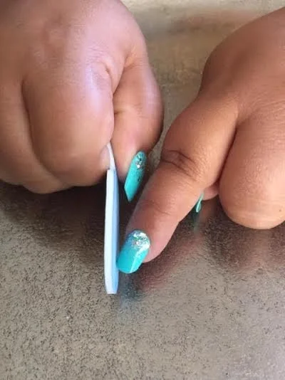 Because the nails are a soft plastic, you can use the nail file to shape the nails to your liking. The shape of these Gel Fantasy nails were square. I prefer a more oval appearance because I have short fingers and an oval shape just slightly elongates their appearance. Making a beauty product look natural (ish) is possible if you just pay attention to the details. Pay extra attention to the shape of the cuticle end of the Gel Fantasy nails to match your nail shape. If you ever notice someone is wearing press on nails, it’s probably because the cuticle shape is really off. You can use the nail file to shape the cuticle side as well.