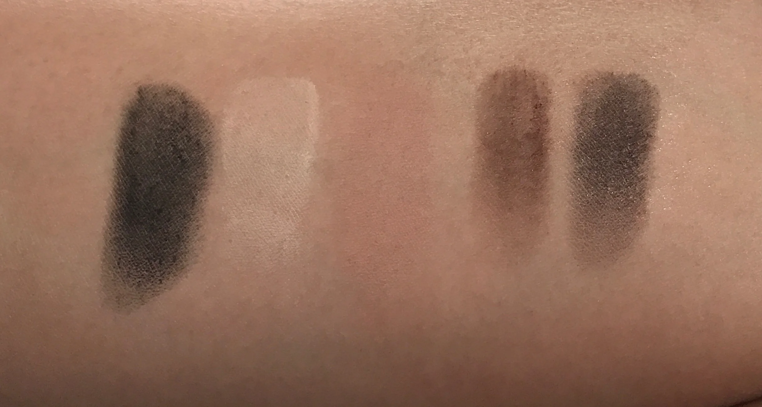 Licorice: ashy matte black; the shadow swatches a bit patchy but it's totally workable with a brush. While it isn't the darkest black eye shadow, it is great to darken the crease or as a liner but I wouldn't make it the featured shadow in an eyelook.